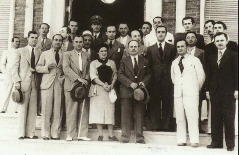 Në foto është ekipi i Ministrisë i Punëve të Jashtme në vitin 1937 me në krye sekretarin e përgjithshëm Dhimitër Berati. Arrij të dalloj sekretarin e II Kostandin Mima (rreshti i parë i dyti nga e majta), drejtori i Shtypit Mihal Sherko (i treti nga e majta), daktilografistja Maria Nikolla.