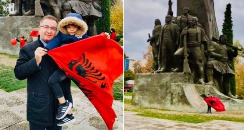 Luan Rama ka publikuar një foto me një vogëlush nga monumenti i pavarësisë në Vlorë, i cili mbante flamurin kuqezi në dorë.