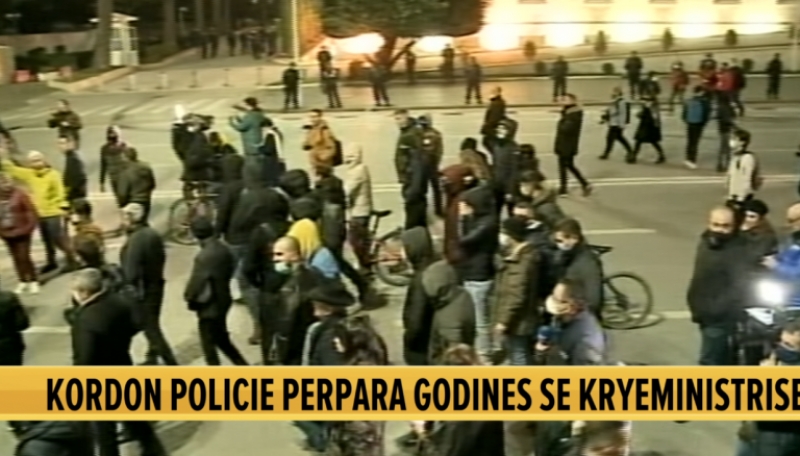 Është vendosur kordon policie përpara godinës së Kryeministrisë. Mirëpo, nuk është shënuar asnjë incident, nuk ka pasur përballje mes demonstruesve dhe policisë.