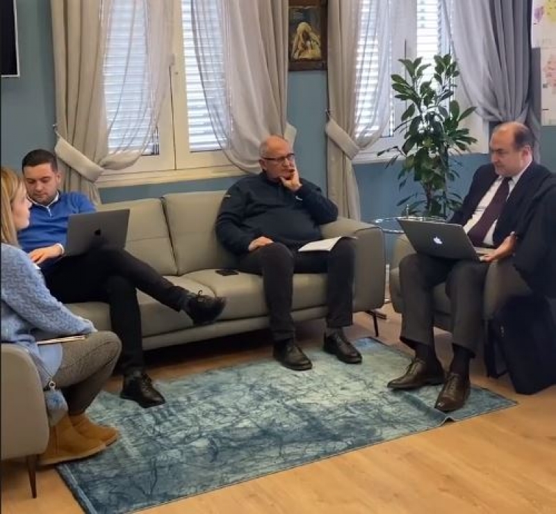 Teksa shihet që po diskuton me ish-ministrin Edmond Haxhinasto dhe nënkryetarin e kësaj force politike, Petrit Vasili