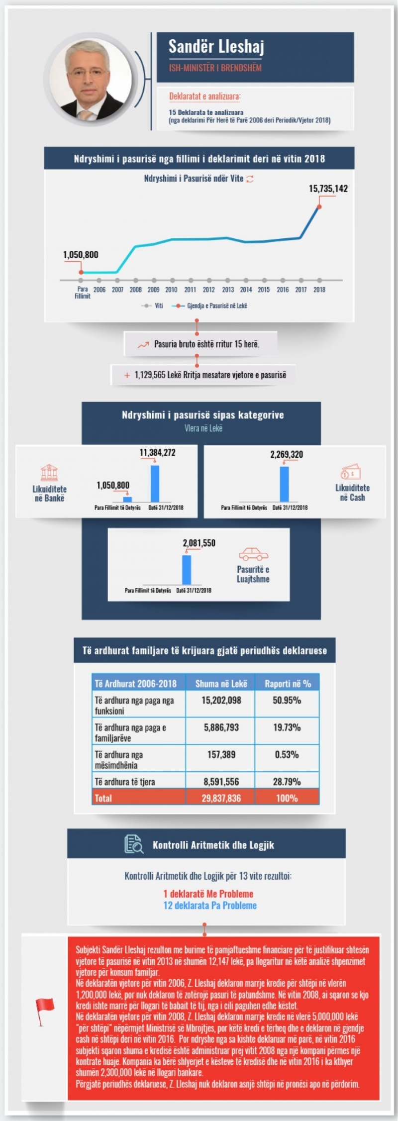 Ky raport është prodhuar nga BIRN pas administrimit të deklaratave të pasurisë së ish-ministrit Sandër Lleshaj nga Inspektorati i Lartë i Deklarimit dhe Kontrollit të Pasurive dhe Konfliktit të Interesit, ILDKPKI. Ai ka për qëllim bërjen e transparencës mbi pasuritë e anëtarëve apo ish-anëtarëve të Këshillit të Ministrave gjatë viteve 2013-2020.