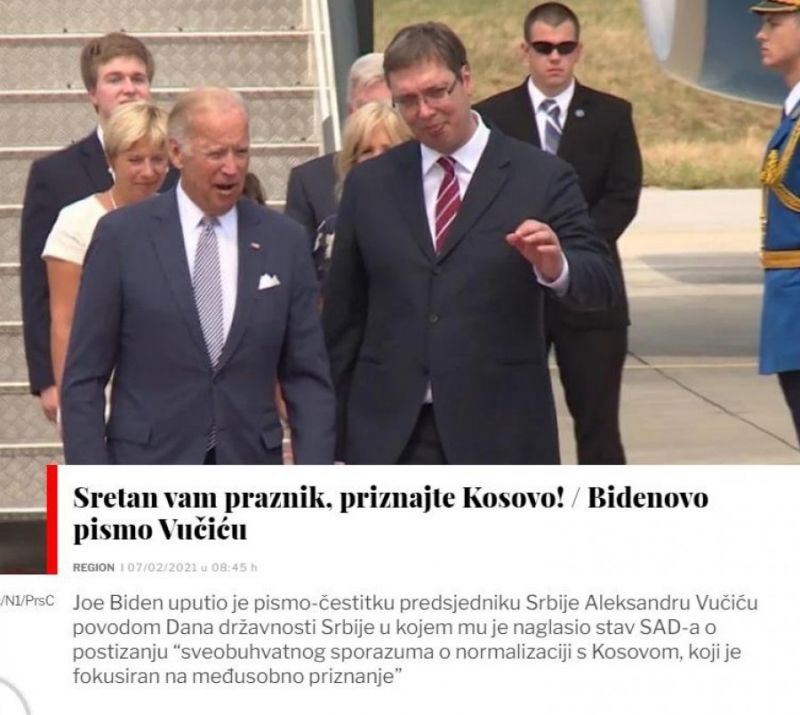 Në një letër urimi drejtuar Presidentit Vuçiç, mediet fqinje shkruajnë se Kreu i SHBA-ve ka kërkuar nga ai arritjen e një marrëveshjeje gjithëpërfshirëse Kosovë - Serbi, që do të përqendrohet në njohjen reciproke.