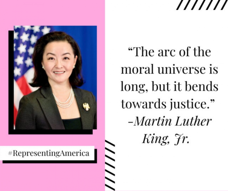 Këtë të dielë, ambasada e SHBA-së në Tiranë ka shkruar për ambasadoren Yuri Kim.