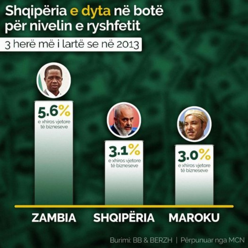 Sipas deputetes, "të dytët në botë për korrupsionin, me zyrtarë që mbushin portofolet nga taksat e shqiptarëve dhe u heqin fitimet bizneseve të shqiptarëve. Tre herë më shumë korrupsion paguajnë bizneset shqiptare në raport me 8 vite më parë!