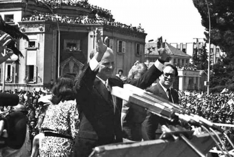 Drejtoria e Përgjithshme e Arkivave kujtoi sot me foto se si rreth 300,000 shqiptarë mbushën sheshin “Skënderbej”, duke i rezervuar një pritje madhështore, ngulitur në kujtesën e të gjithëve. Populli ishte ngjeshur në sheshin kryesor të Tiranës për të dëgjuar fjalën e Sekretarit Amerikan.