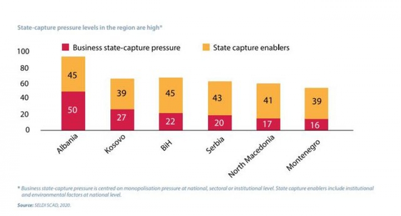 Në Ballkanin Perëndimor ekziston rreziku i kapjes së shtetit. Kështu thuhet në raportin e organizatës “Lidership për Zhvillim dhe Integritet në Evropën Juglindore”(SELDI). SELDI evideton se përgjatë vitit 2020 presioni i kapjes së shtetit në rajon ende mbetet në nivele të larta.